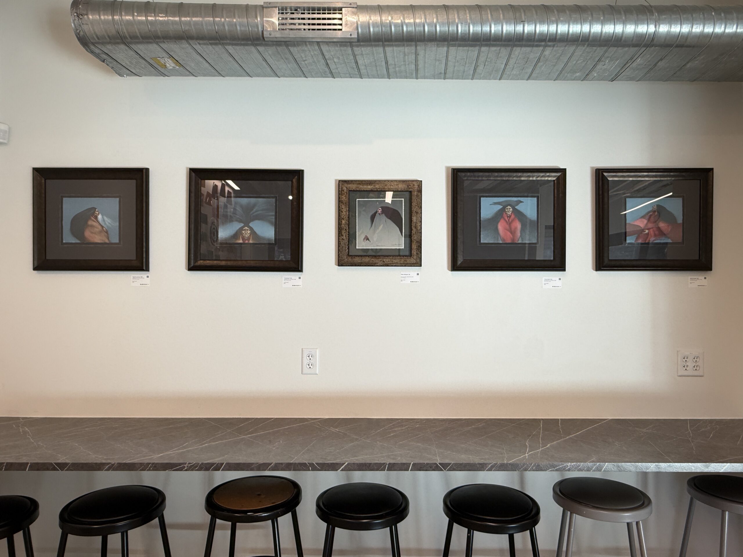The conference room doubles as an intimate gallery space, featuring rotating artwork that adds character and visual interest to a quiet, private setting. Suited for small gatherings, meetings, or workshops, the space offers a professional atmosphere within a creative environment.