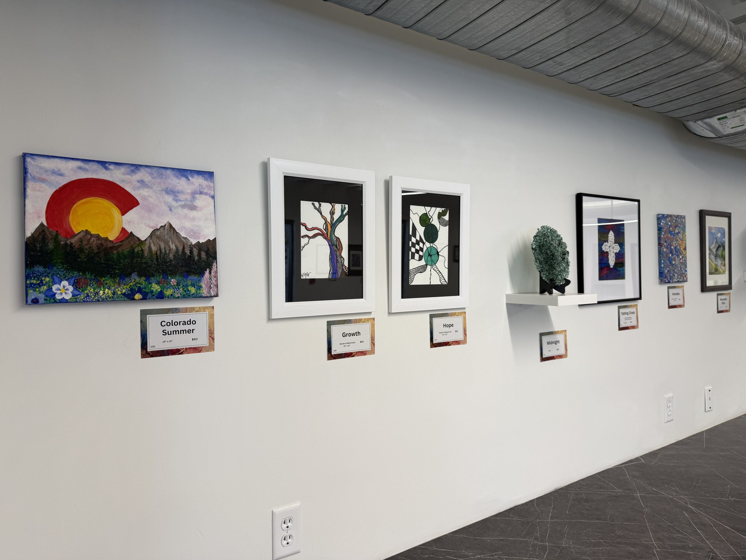 In addition to its Main Gallery, Center for the Arts Evergreen also curates smaller temporary art exhibitions in its Community Room and Board Room Galleries. Artwork on display is almost always available for sale, supporting both local artists and programming at CAE. If you are interested in purchasing a piece you have seen in one of our auxiliary spaces, please get in touch with Chris Stevens, director of exhibitions, at chris@evergreenarts.org or 303.674.0052.