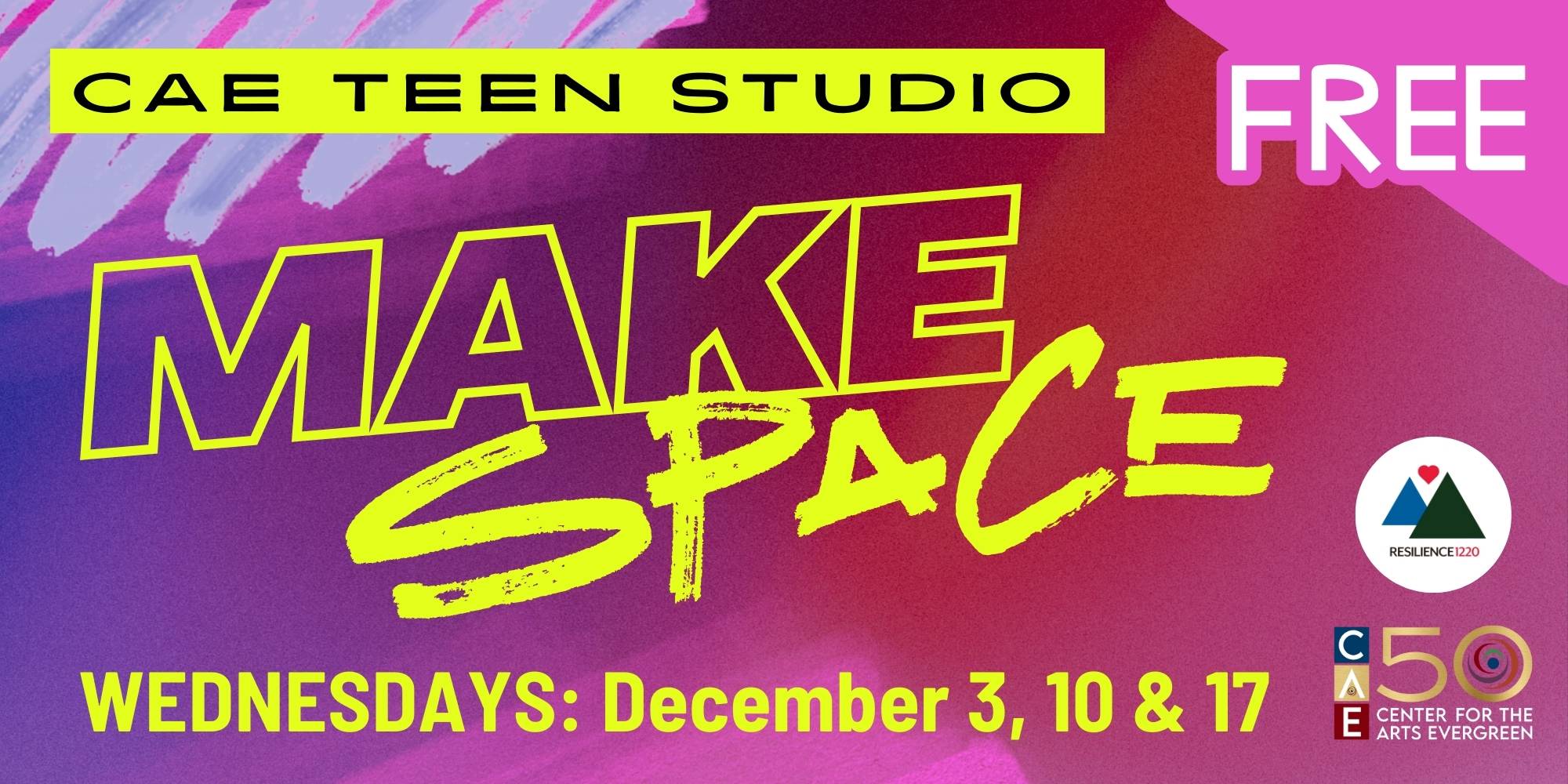 Come hang at MakeSpace: our new teen studio nights at Center for the Arts Evergreen! How you use the space is totally up to you: create art, listen to music, snack, or just relax and be social.