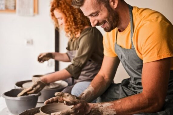 Have you ever wanted to try your hand at the pottery wheel? Or maybe you and some friends are looking for a fun night of art and wine? Well, look no further! Clay Dates is here! In this 1-night, intimate pottery class setting, students will get an introduction to clay and throwing on a potter’s wheel.